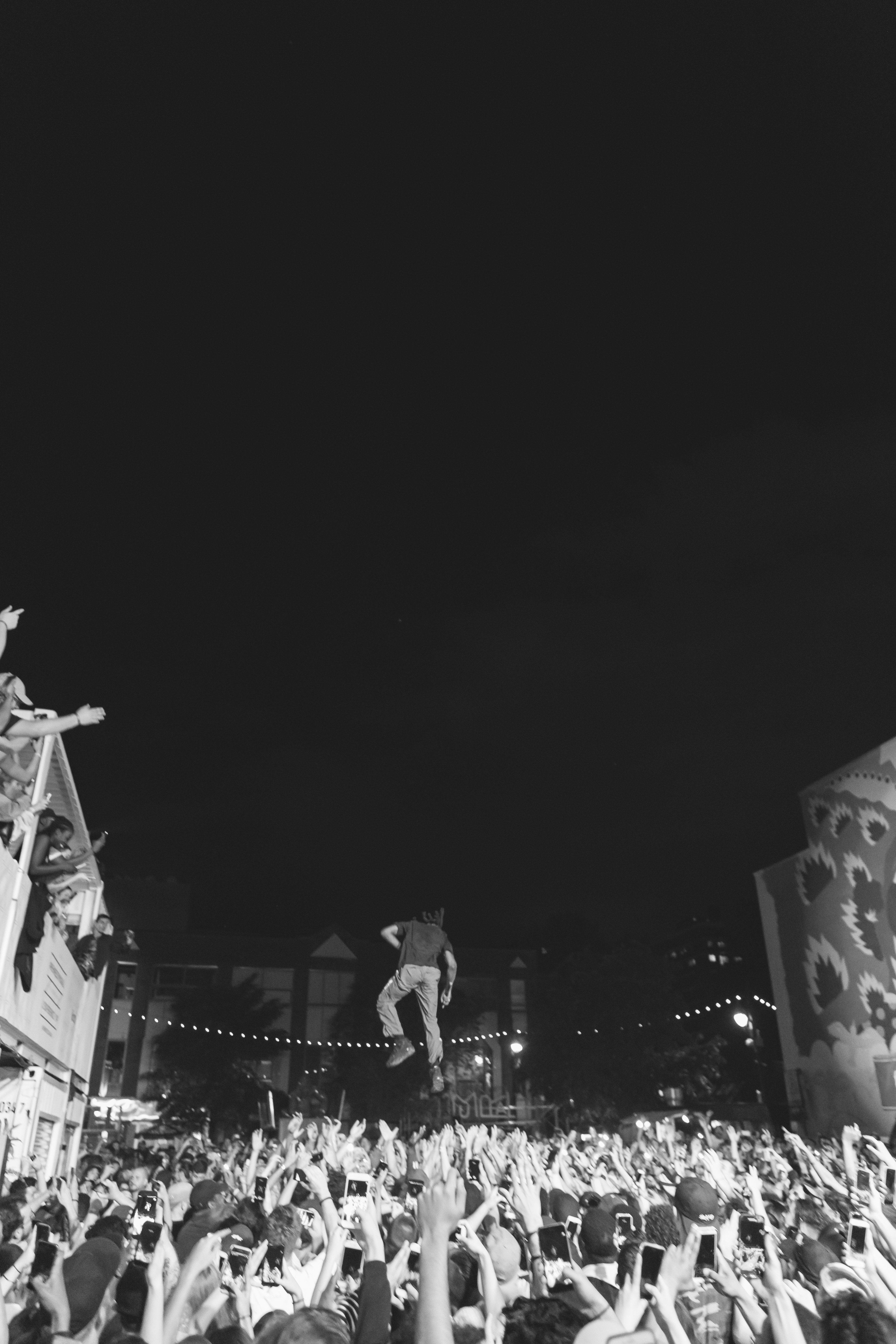 Our time during the festival was spent between Hennessy’s VIP experience and at the front of the stage taking photos of the performances. The energy pulsating from the crowd was contagious. With a five-story building as his canvas, a muralist worked on a new masterpiece, while Jazz Cartier performed below.